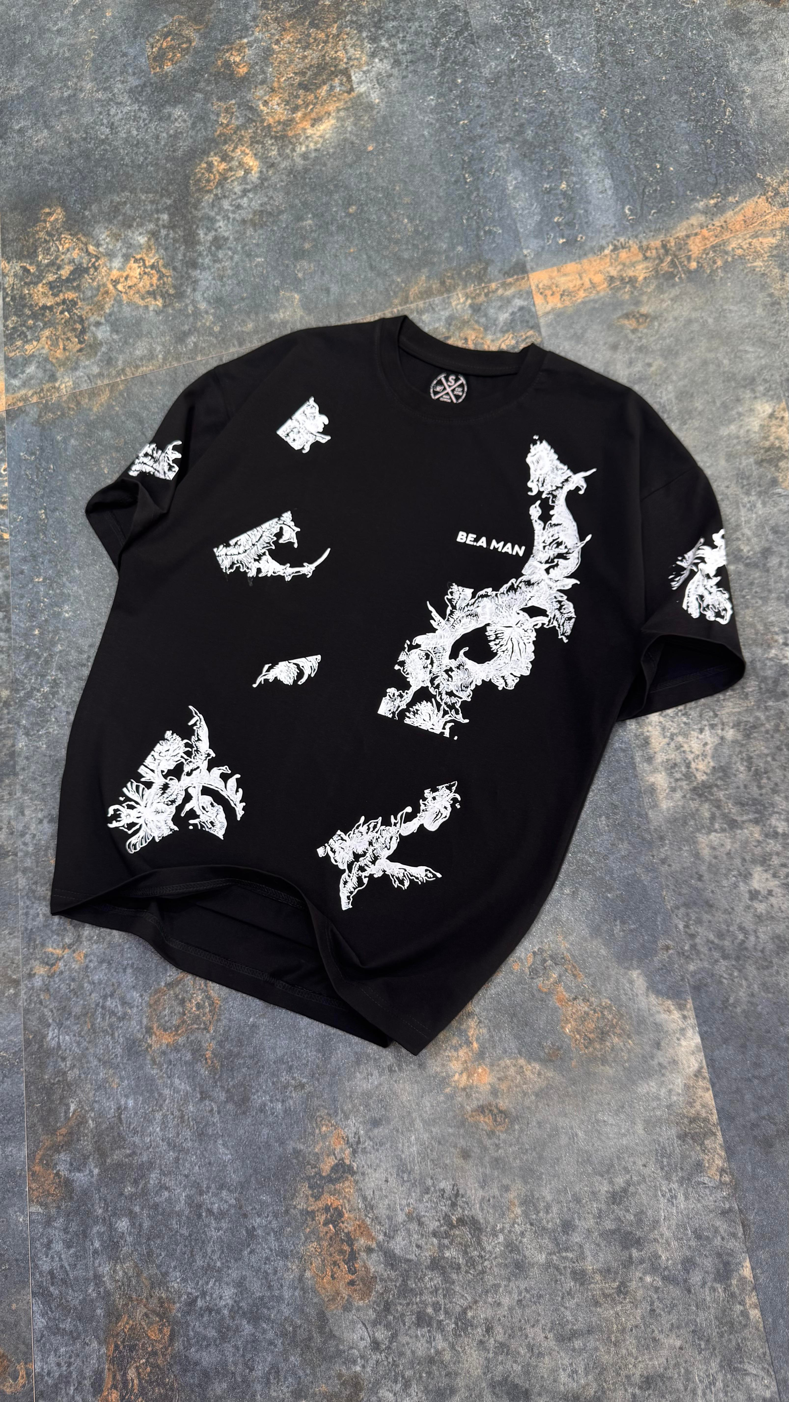 BeAMan Baskılı Siyah Oversize T-Shirt