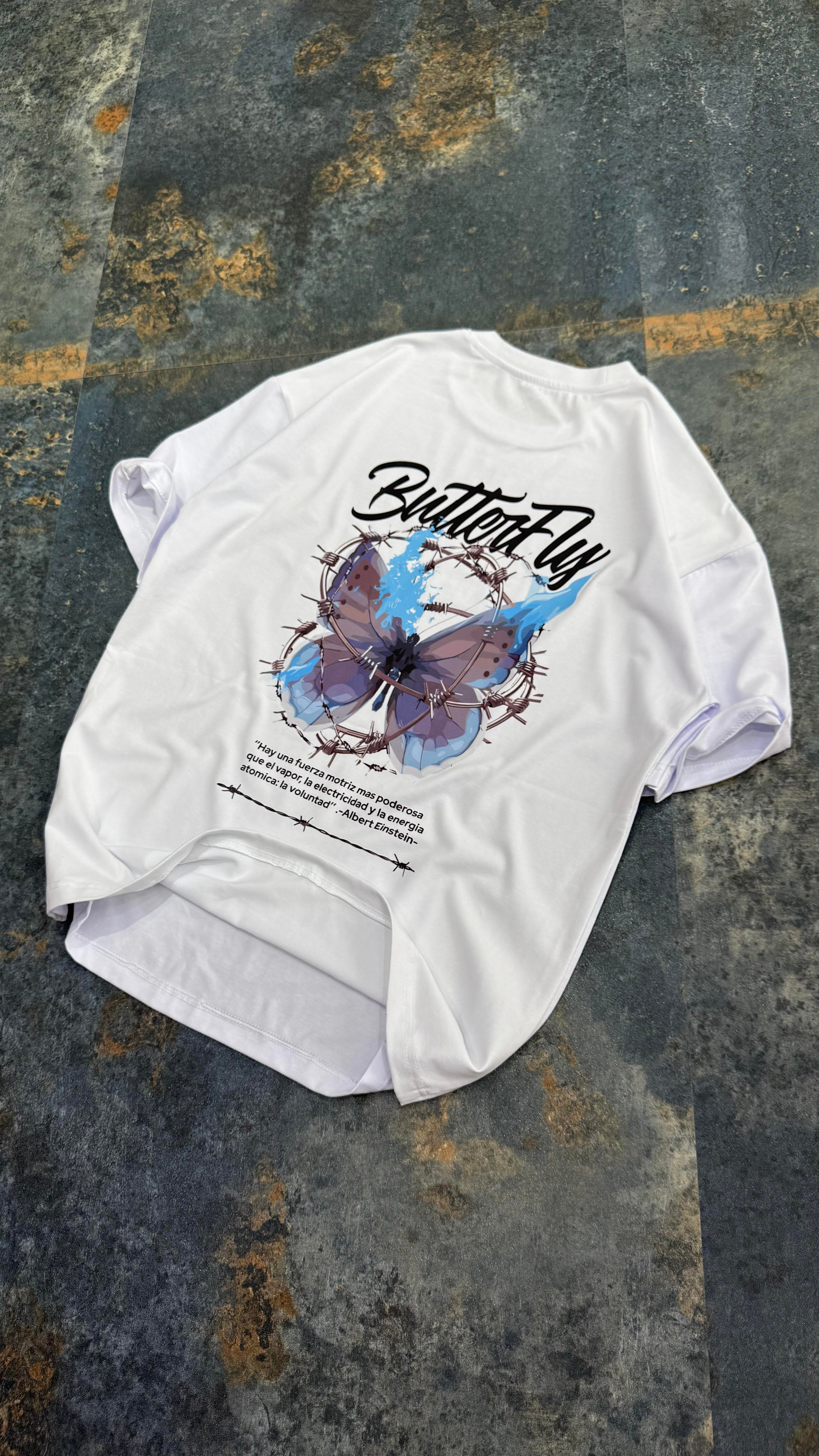 ButterFly Baskılı Beyaz Oversize T-Shirt