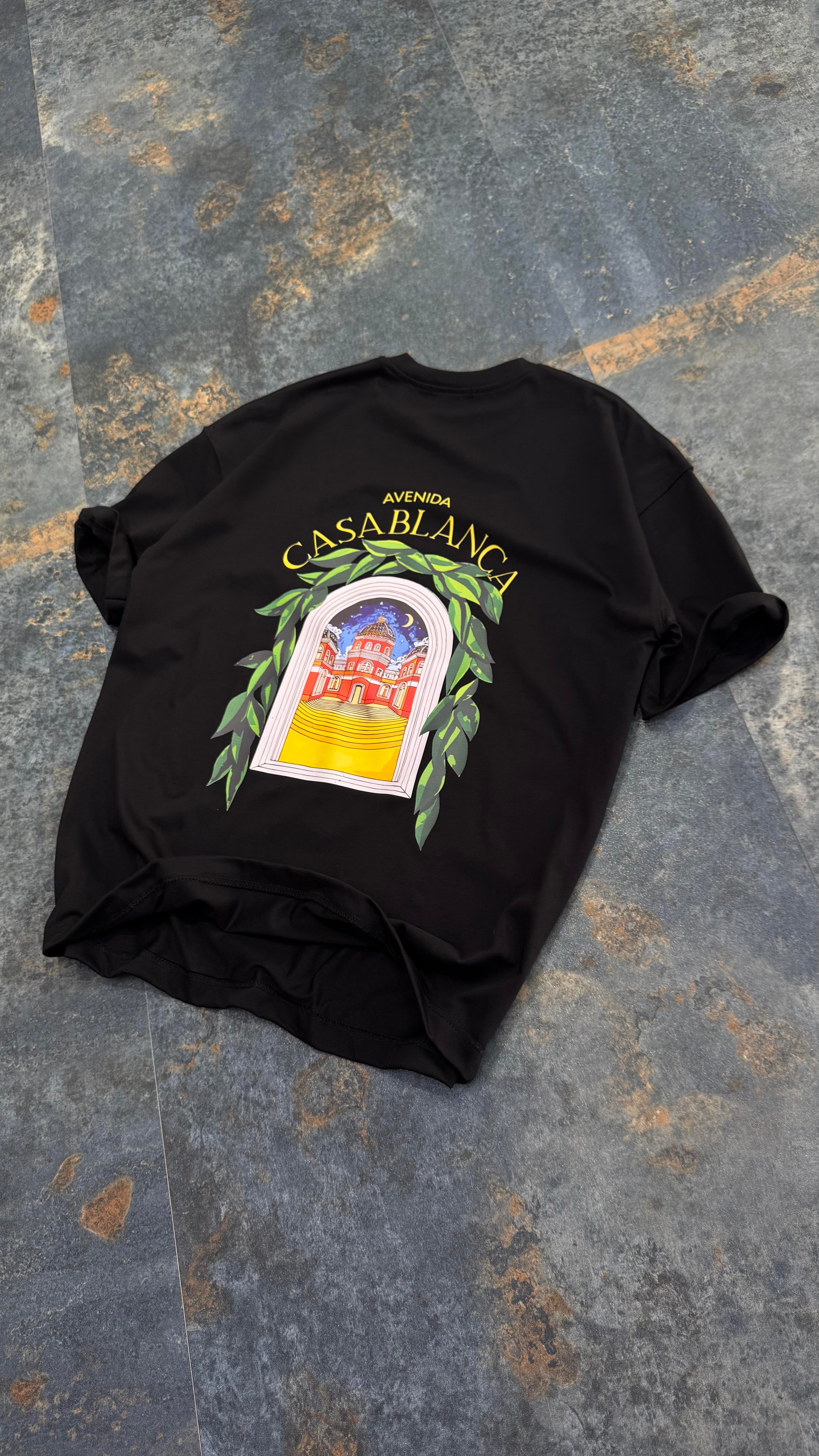 Casablanca Baskılı Siyah Oversize T-Shirt