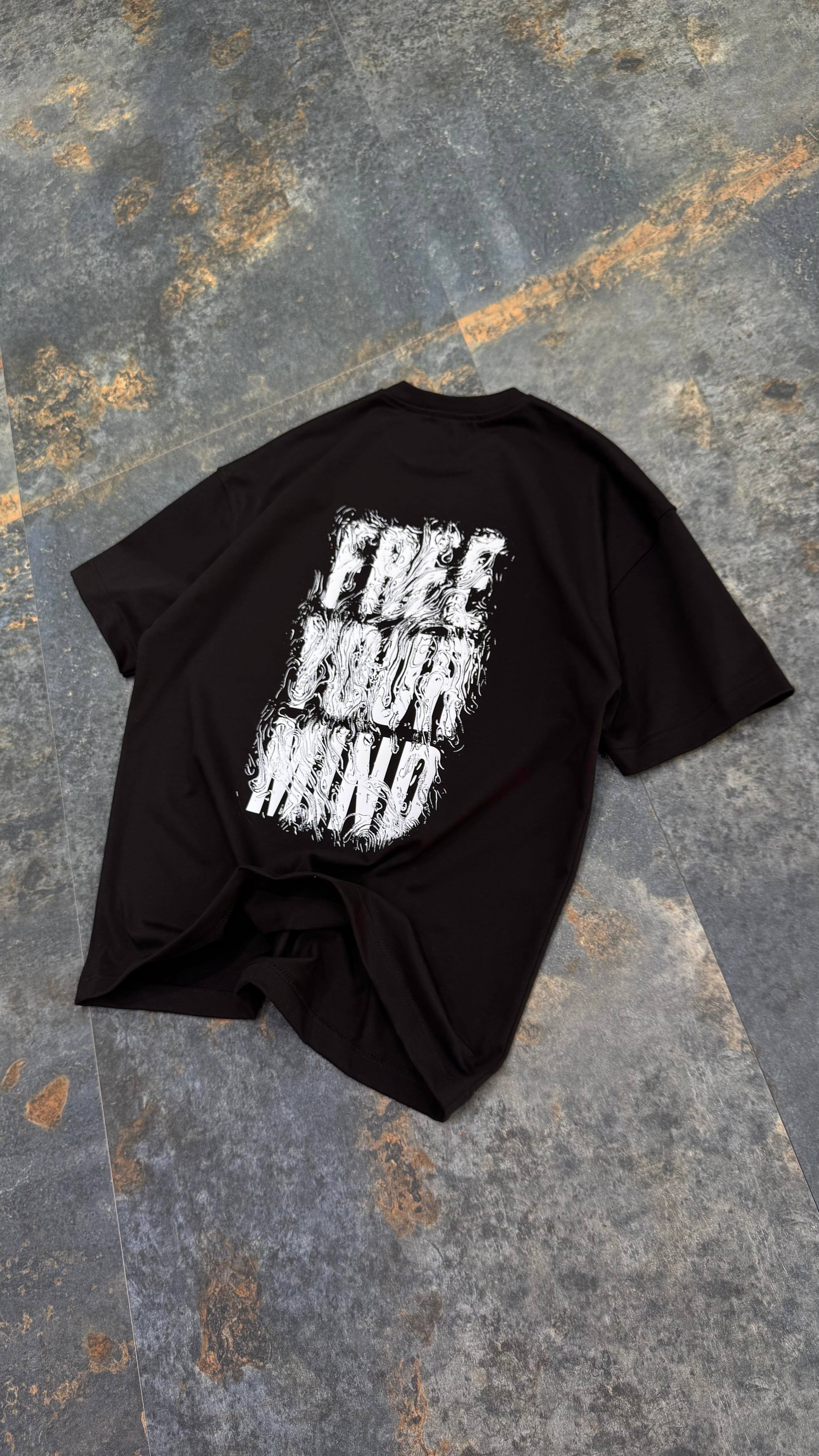 FYM Baskılı Siyah Oversize T-Shirt
