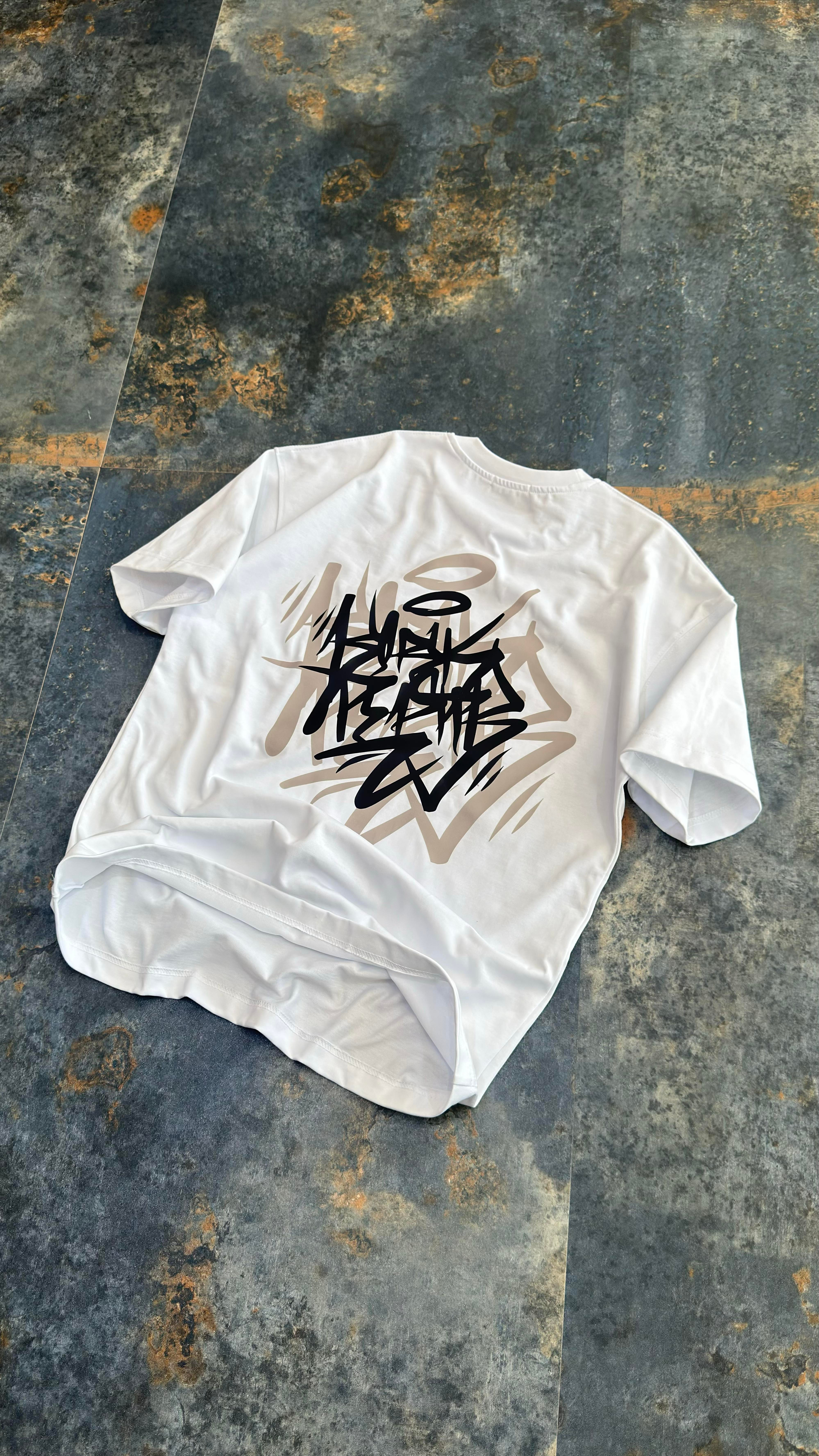 Grafiti Baskılı Beyaz Oversize T-Shirt