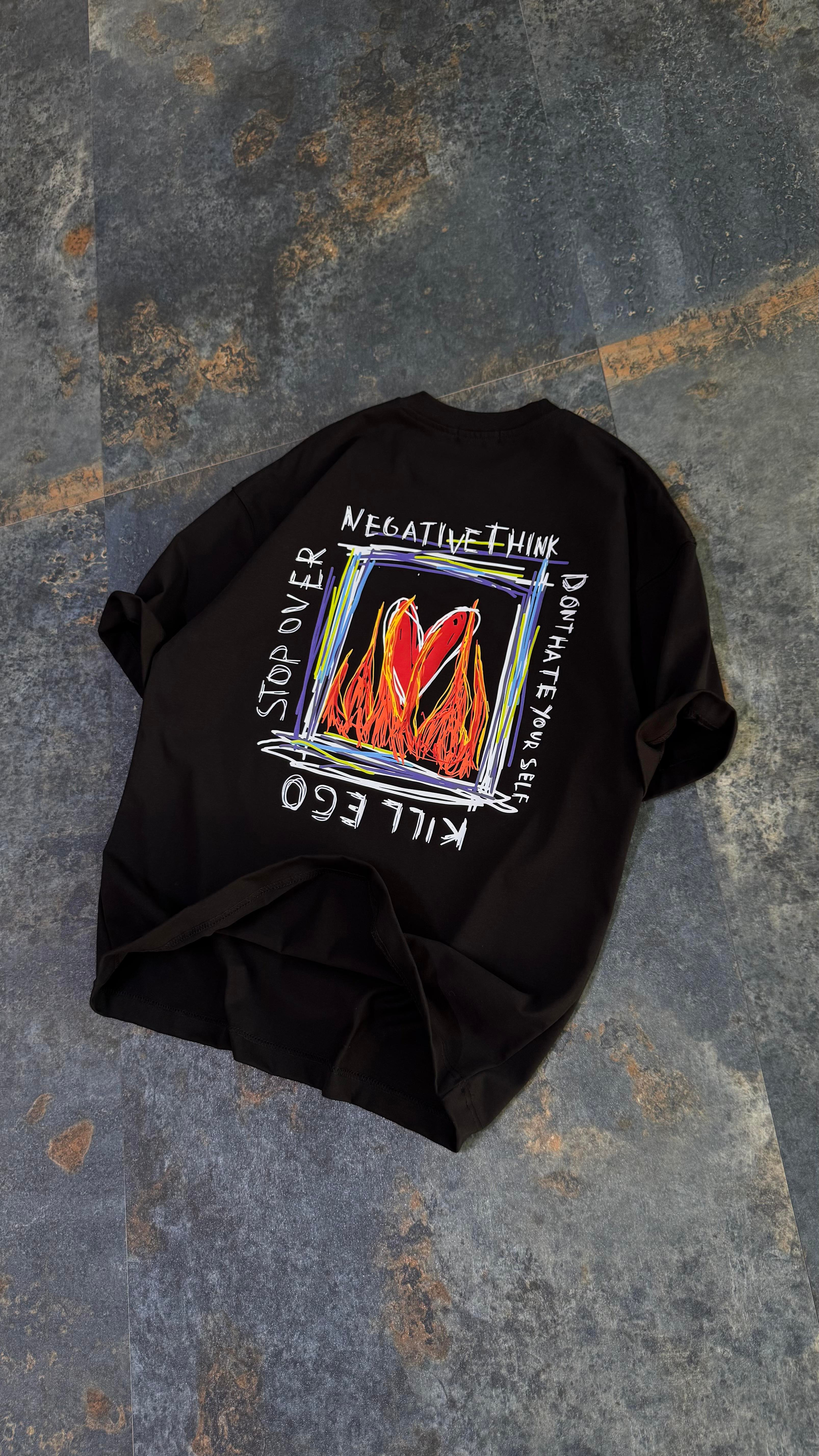 Kill Ego BaskılıSiyah Oversize T-Shirt