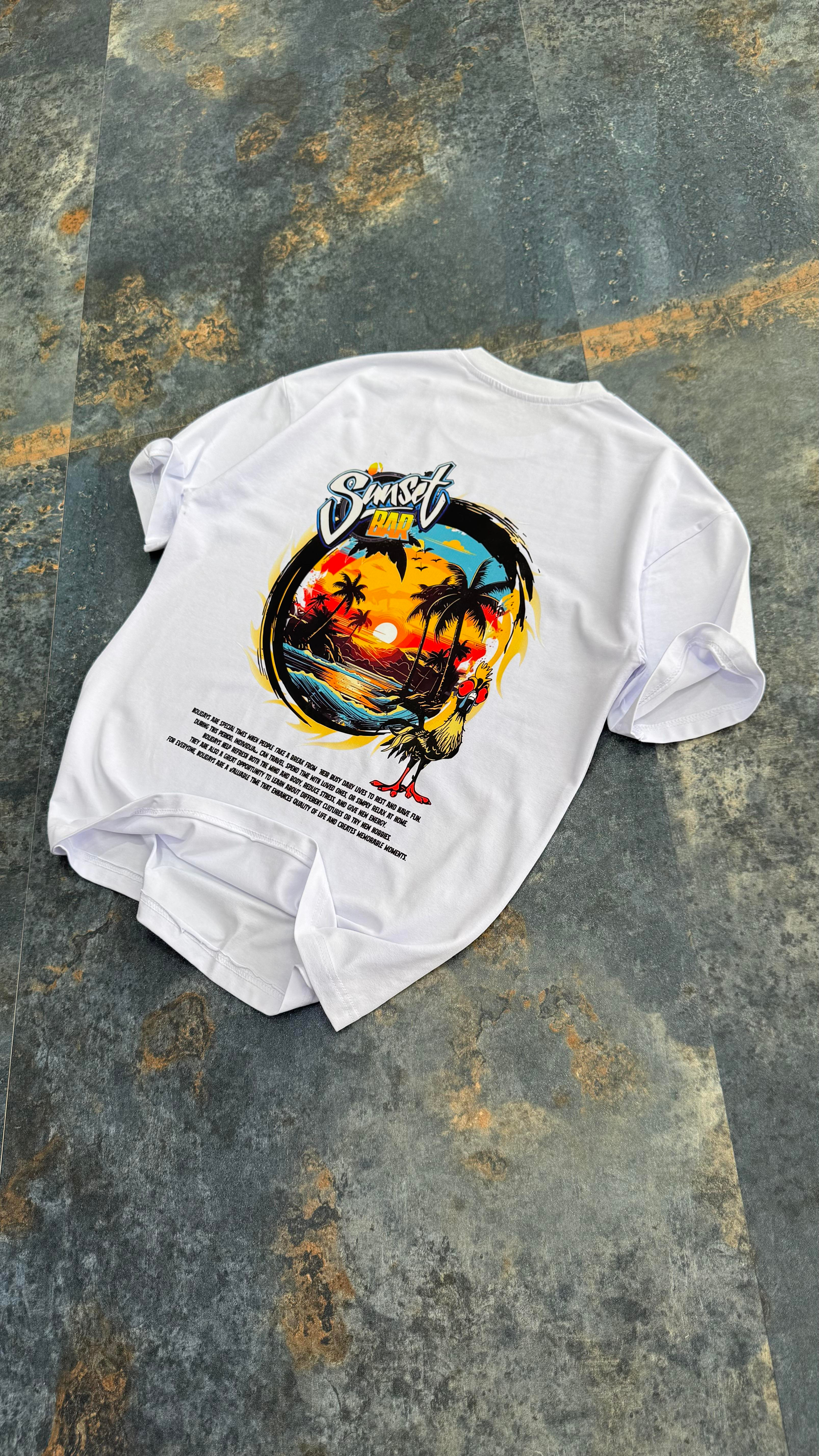Sunset Baskılı Beyaz Oversize T-Shirt