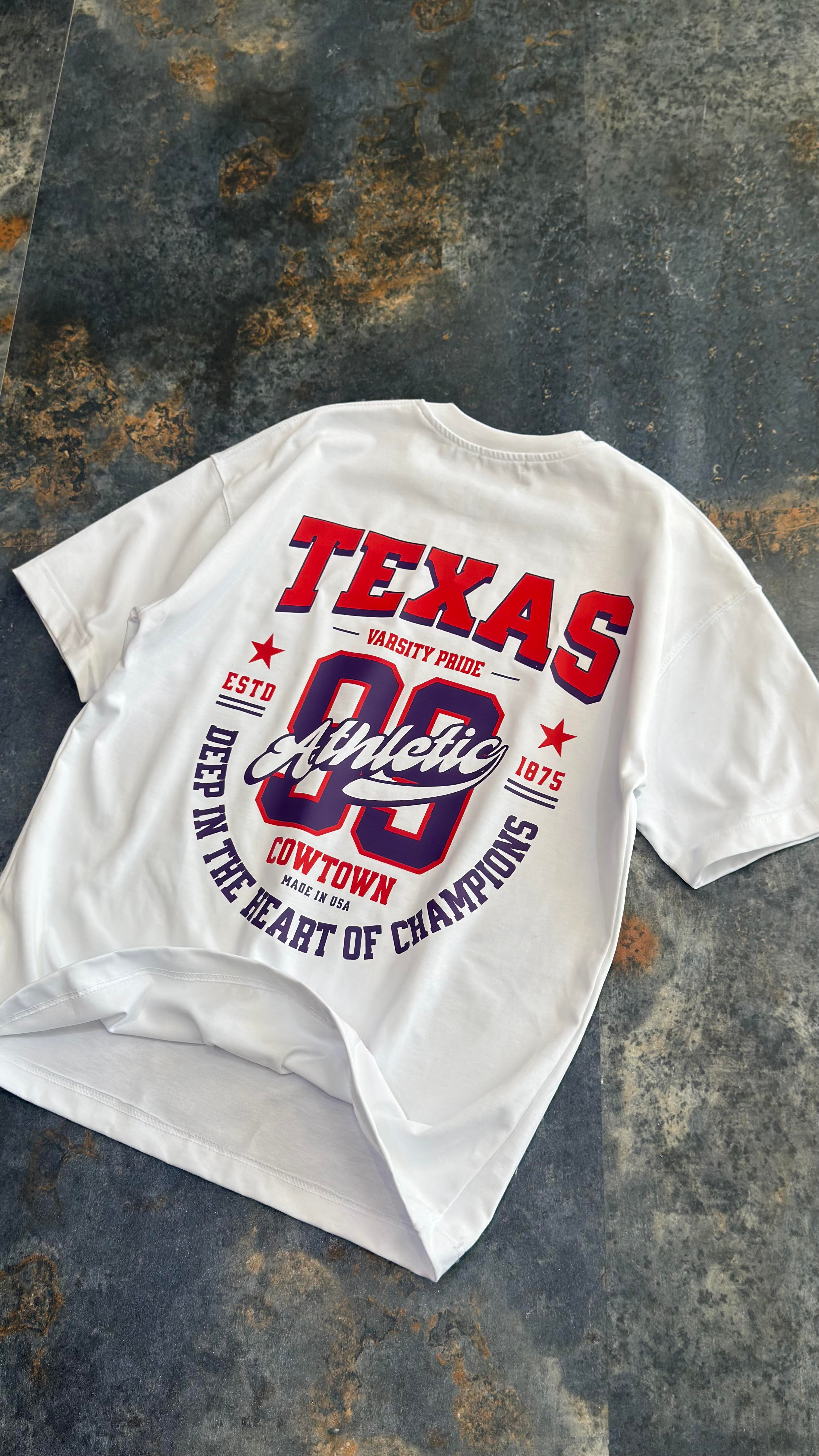 Texas Baskılı Beyaz Oversize T-Shirt